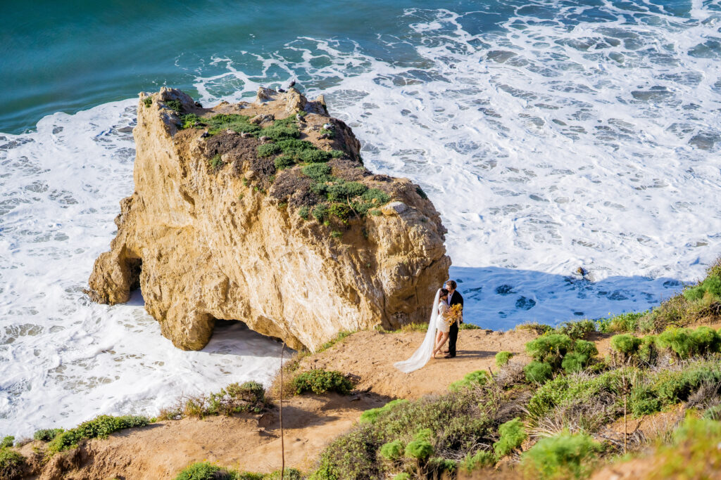 One of the most spectacular places in Malibu to exchange your vows is Point Dume, a majestic headland that juts out onto the Pacific Ocean, with a boardwalk and viewing point that offers splendid views of Santa Monica Bay. A Point Dume elopement is one of my favorites because of its natural beauty and unspoiled location!