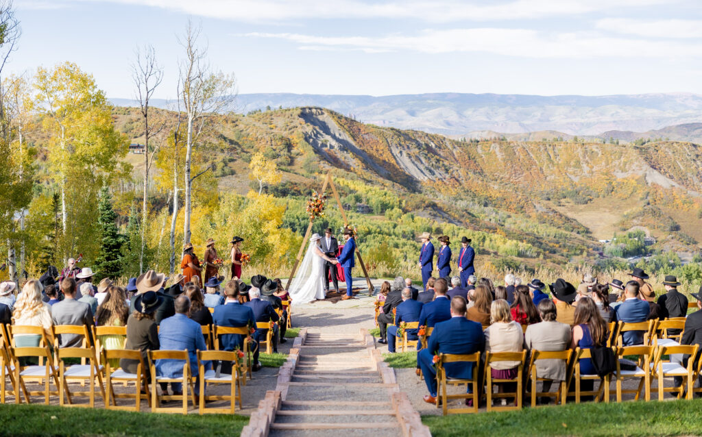 Of course, a white winter wedding is always stunning in Aspen, but I also really recommend fall. When getting married at Limelight Hotel, they have a beautiful wedding ceremony option that takes you to an overlook in the valley via a shuttle. It is STUNNING and really unlike anywhere else.