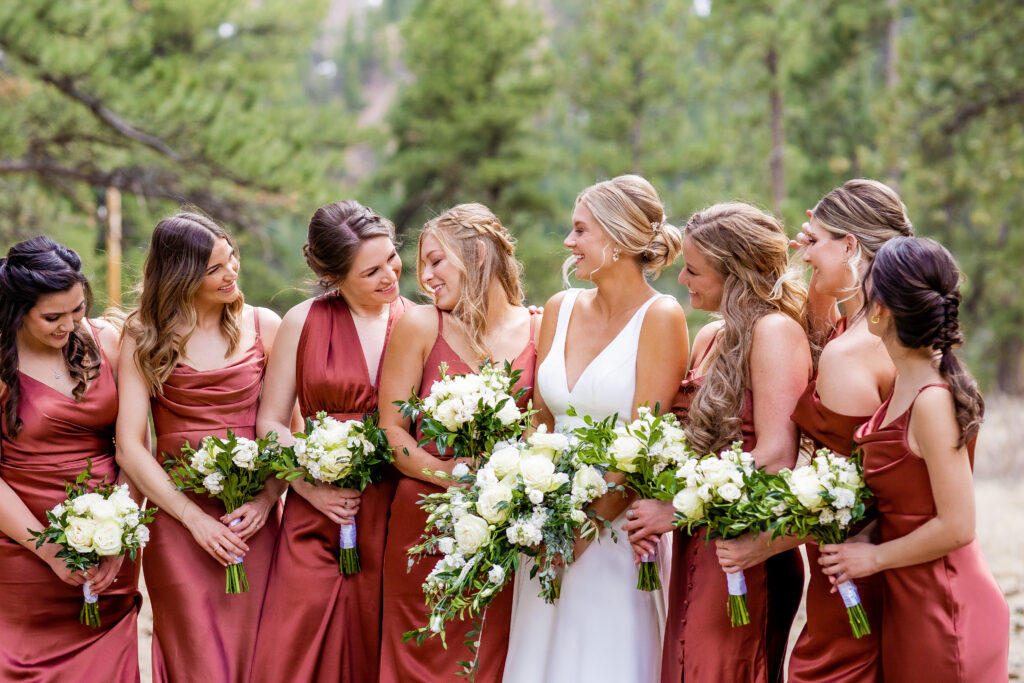 I am OBSESSED with the beauty and charm of Della Terra Mountain Chateau weddings! Della Terra Mountain Chateau is a boutique mountain inn, in Estes Park. It’s so luxurious; a secluded natural oasis with stunning mountain architecture — think exposed beams, beautiful stonework, and plenty of hot tubs! Oh, and did I mention you’re just minutes away from the entrance to Rocky Mountain National Park, so good!